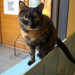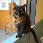 見たまんま!まん丸なお顔でとっても優しい性格のおこげちゃん、お膝に乗るのが大好きで愛嬌抜群!カフェの人気者です!